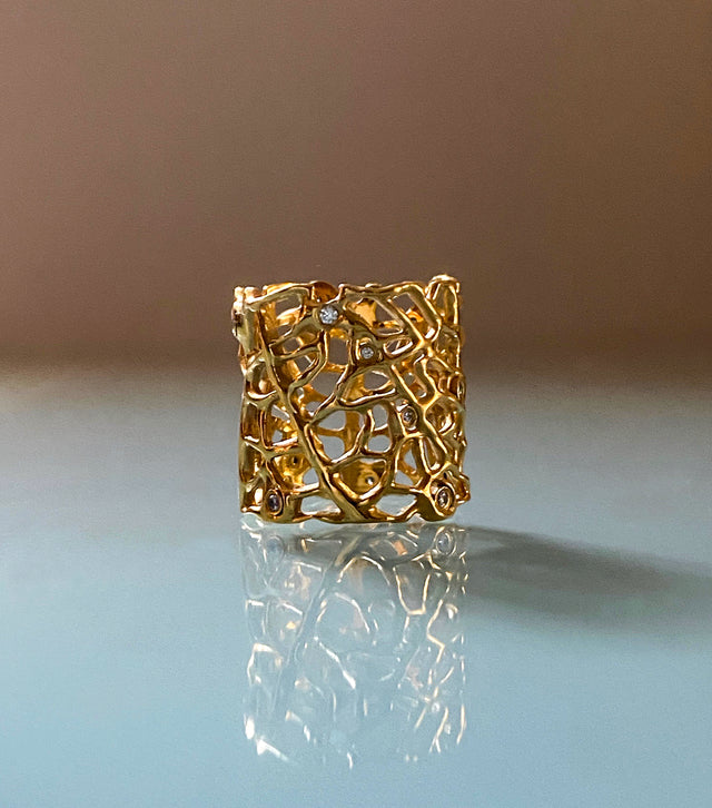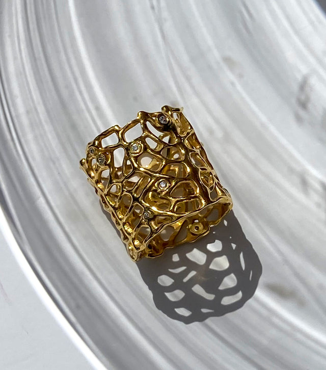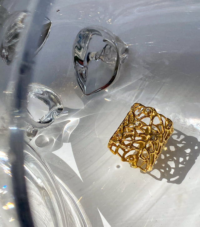 Inspired by ‘Sun Glitter’ the sparkling light that catches the tops of the waves at sundown, this ring has been designed directly from a piece of Seafan coral.