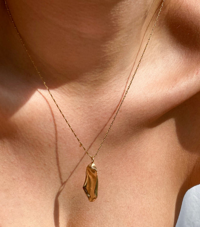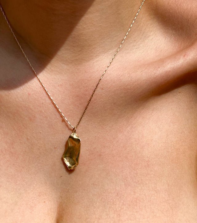 This one of a kind necklace features a single 9ct gold rose petal with a semi polished finish, suspended on a 40cm textured chain. Exquisite from every angle, this piece has been hallmarked discreetly so that you can display your petal whichever way you choose.